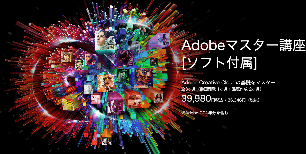 いきなり結論ですが、デジハリ・オンラインスクールに入学すると、デジハリのオンライン動画+AdobeCCのライセンスを「39,980円(税込み)」で手に入れることができます。