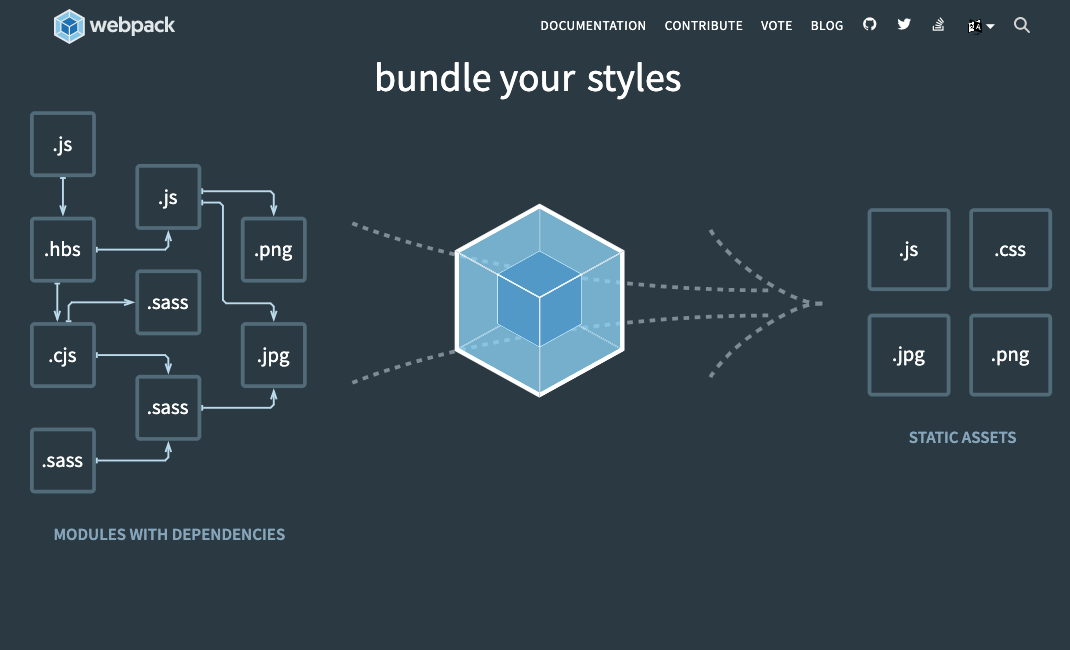 webpackは、オープンソースのJavaScriptモジュールバンドラーです。対応するローダーを組み込むことによって、HTML、CSS、画像なども読み込んだり変換することが可能です。